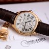 Bắt nguồn từ những ngày của Louis Cartier, Ronde de Cartier được xác định bằng các chữ số La Mã, kim hình thanh kiếm màu xanh lam và một chiếc cabochon bằng sapphire. Cơ chế lên dây cót của nó, được trang trí bằng một vòng tròn phút trên đường ray, làm cho nó trở thành một mặt hàng chủ lực của sự sang trọng vượt thời gian.