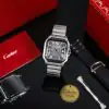 Được tạo ra bởi Louis Cartier vào năm 1904 cho phi công Alberto Santos-Dumont, đồng hồ Santos de Cartier là chiếc đồng hồ đeo tay hiện đại đầu tiên. Thiết kế đặc trưng của nó, với các vít có thể nhìn thấy và hình bóng vuông táo bạo, đã dễ dàng thích nghi với thời đại kể từ khi được tạo ra – trong khi vẫn đúng với cảm hứng phá vỡ ranh giới của đồng hồ.