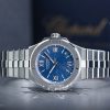 - Dial màu xanh thẫm nhờ thiết kế hoàn thiện bằng kỹ thuật điện galvanic được lấy cảm hứng từ mống mắt đại bàng; chữ số la mã, vạch chỉ giờ và các kim thời gian mạ rhodium và phủ chất phát quang Super-LumiNova.
